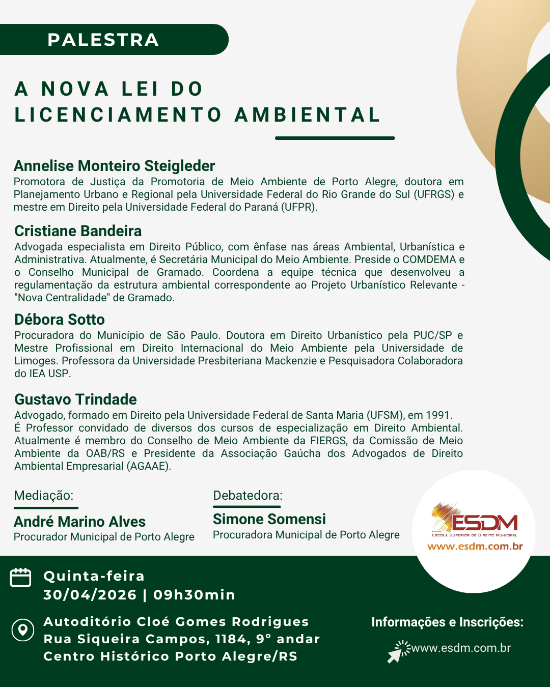 Local: Sede da ESDM – Auditório Cloé Gomes Rodrigues, Rua Siqueira Campos, 1184 – 9º andar, Porto Alegre/RS