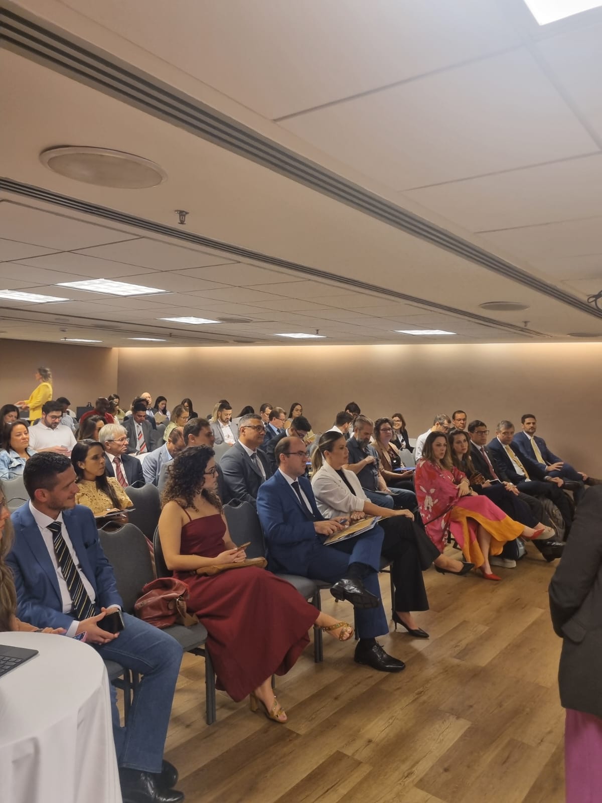 Na sequência, os anfitriões do evento também manifestaram suas boas-vindas. A Dra. Maria Amélia Maciel Machado, o Dr. Tércio Roberto Peixoto Souza e o Dr. Eduardo de Carvalho Vaz Porto manifestaram a alegria em receber o encontro em Salvador e reforçaram o compromisso das entidades locais com o fortalecimento do diálogo entre procuradorias fiscais.  Em seu pronunciamento, o Procurador-Geral do Município de Salvador, Dr. Eduardo de Carvalho Vaz Porto, ressaltou a relevância do momento e o significado de reunir procuradoras e procuradores de todo o país para debater o futuro da atuação fiscal municipal. O Procurador-Geral também fez uma menção especial ao colega Dr. Pedro Caymmi, um dos palestrantes do encontro, cuja presença foi recebida com especial carinho e acolhimento pelos participantes, evidenciando o espírito de união e apoio que marcou o evento