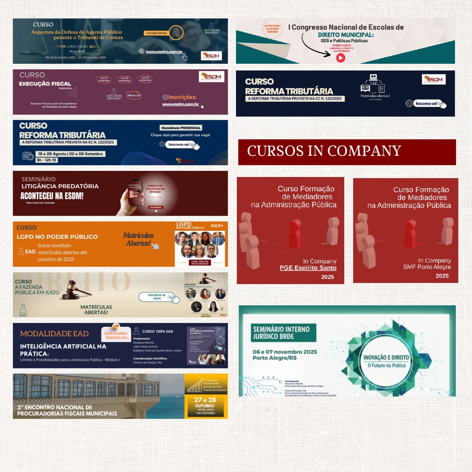 O espaço da ESDM também se consolidou como ambiente de circulação de ideias, com lançamentos de livros, debates com autores e a ampliação do acervo jurídico. Nos canais digitais e nas redes sociais, a ESDM ampliou seu alcance e fortaleceu o diálogo com a advocacia pública, a academia e os municípios, consolidando sua presença institucional em âmbito nacional.
