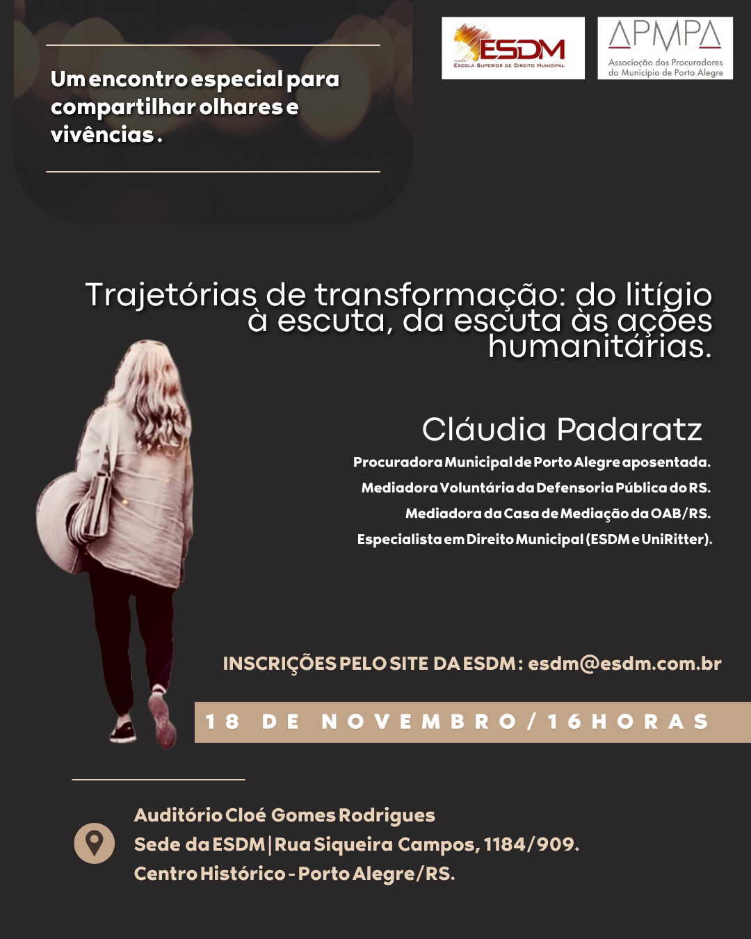 Local: Sede da ESDM – Auditório Cloé Gomes Rodrigues, Rua Siqueira Campos, 1184 – 9º andar, Porto Alegre/RS